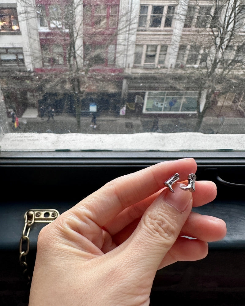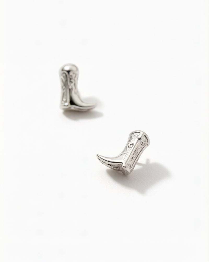 Crafted in solid 14K yellow or white gold, each 8 × 7 mm boot features fine carved detailing and is set with a single S1 diamond. Compact yet confident, the design captures the bold spirit of the cowboy — ready to go wherever you choose. Perfect for daily wear or pairing with the matching necklace.