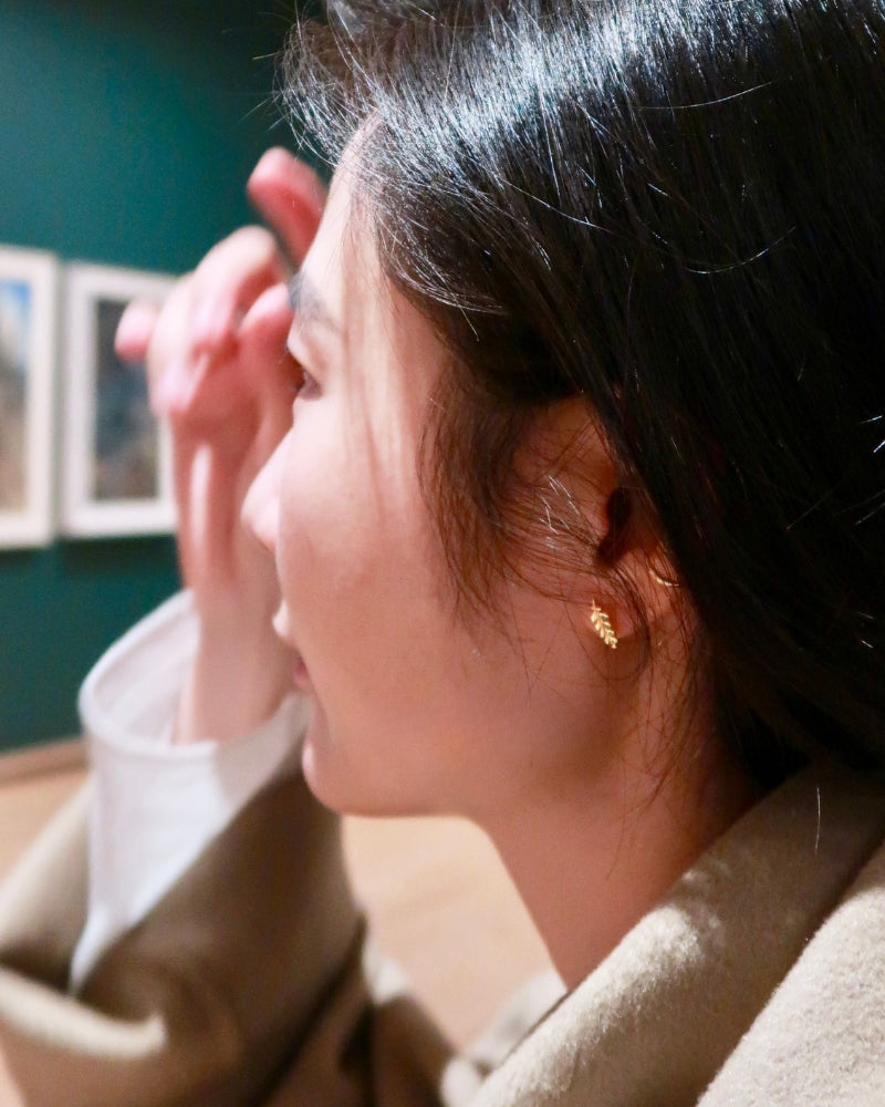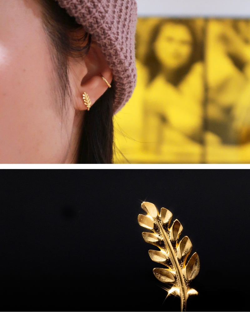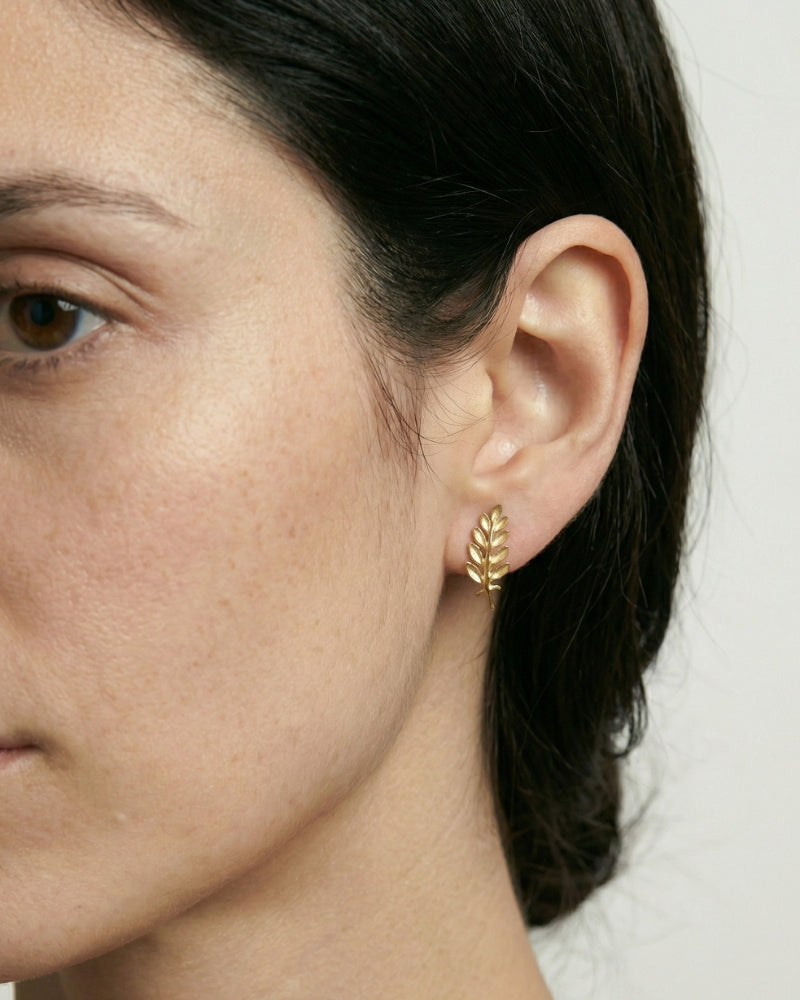 These olive leaf climber earrings are crafted in solid 18K gold and follow the natural curve of the ear. Refined, warm, and easy to wear. Style them upward or downward to suit your look.