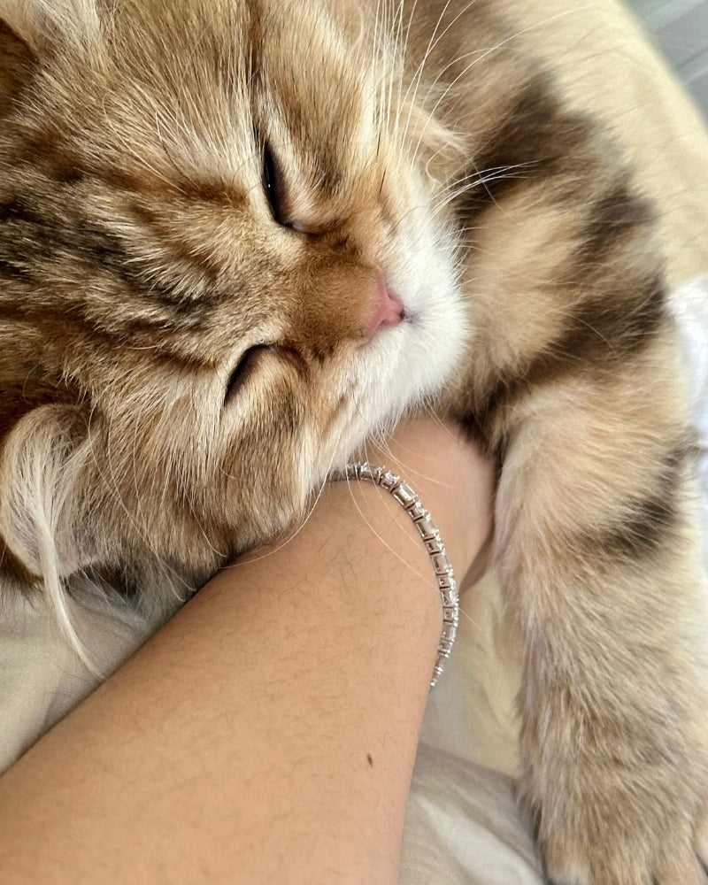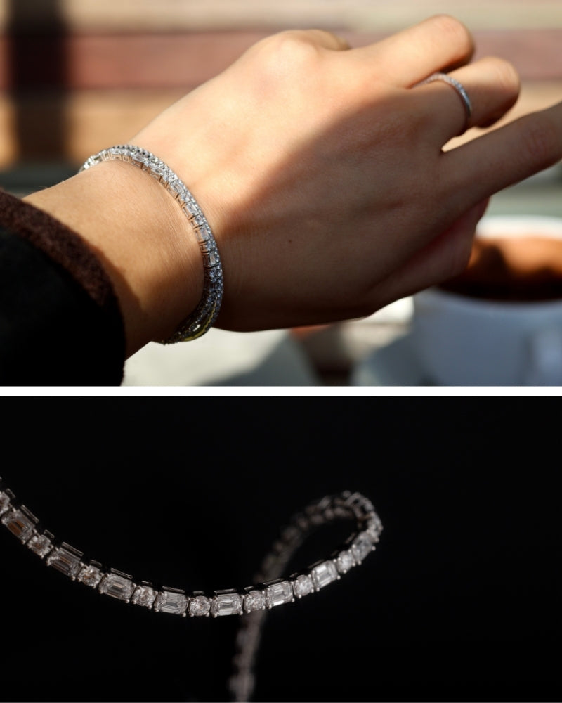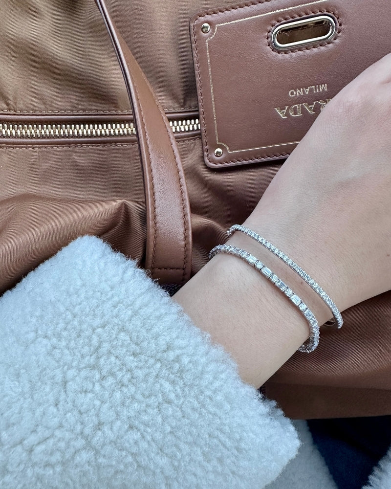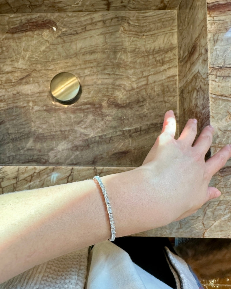 A bold, beautifully balanced take on the classic tennis bracelet. Nearly 4.5 carats of diamonds — 42 stones blending princess-cut squares with timeless round brilliance. Designed for presence, yet smooth on the wrist. Wear it daily. Stack it or let it stand alone.