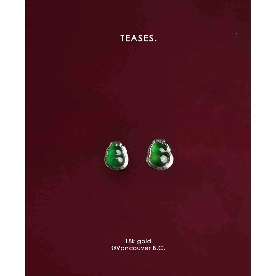 옥 호박 귀걸이, 18K 골드 수제 행운