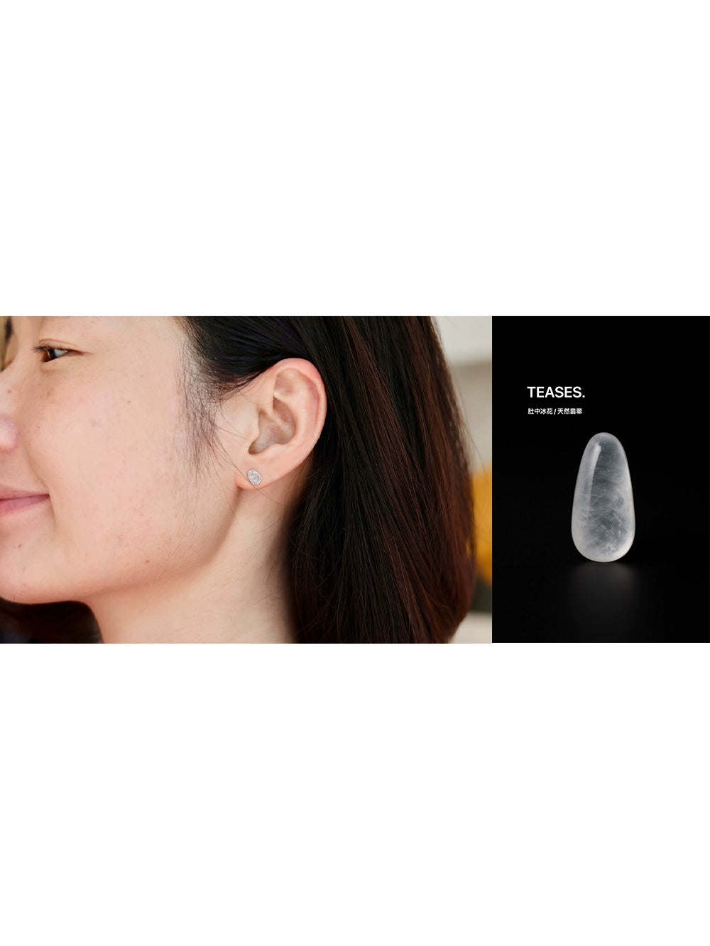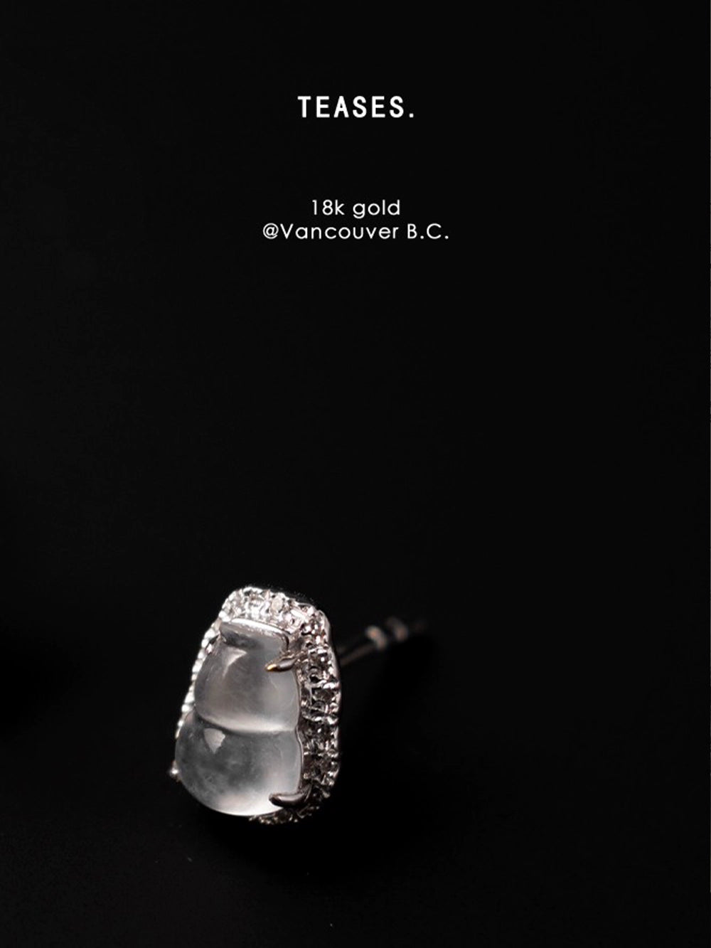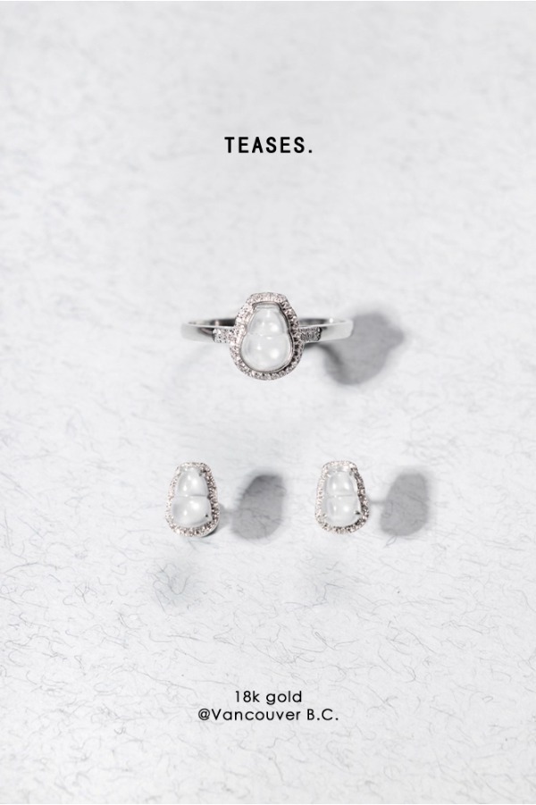 TEASES의 아이시 제이드 호박 귀걸이 & 반지 세트 | 18K 화이트 골드 & 다이아몬드