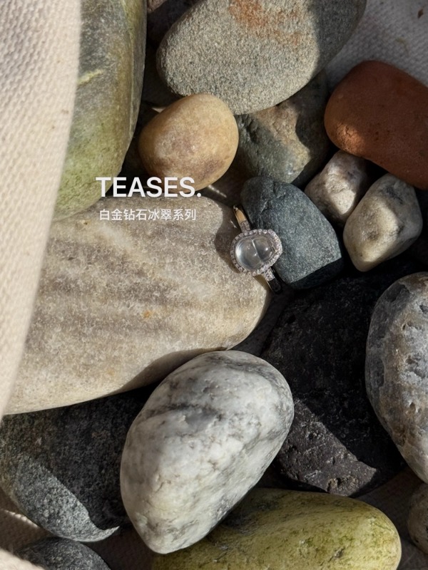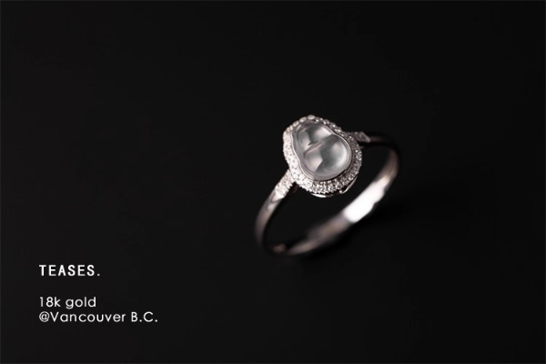 (반지. 화이트 골드 다이아몬드 아이시 제이드 반지 / 원피스)