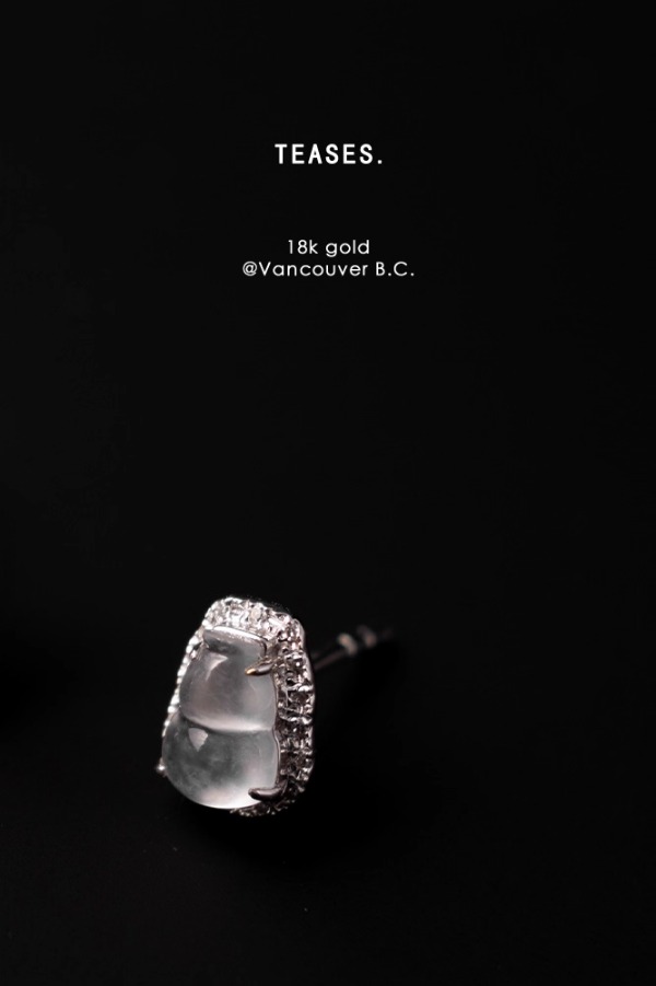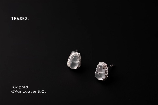 (귀걸이. 화이트 골드 다이아몬드 아이시 제이드 귀걸이 / 한 쌍)