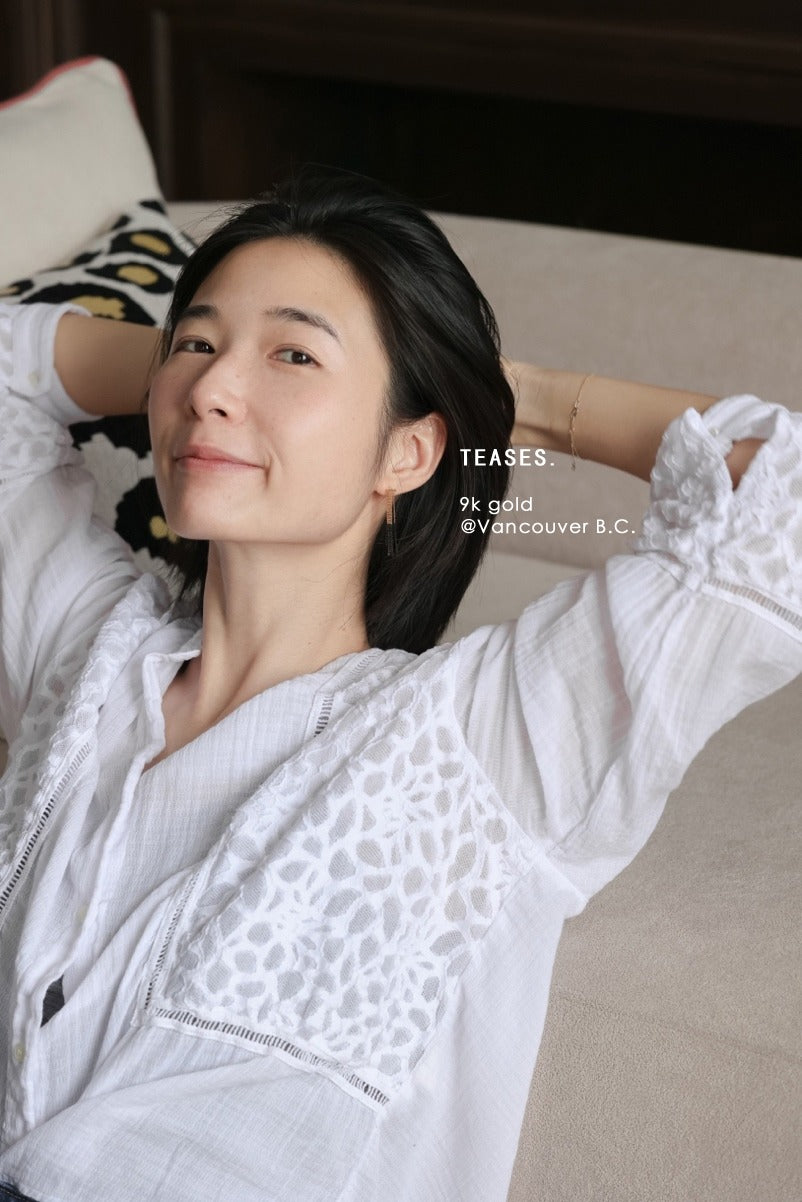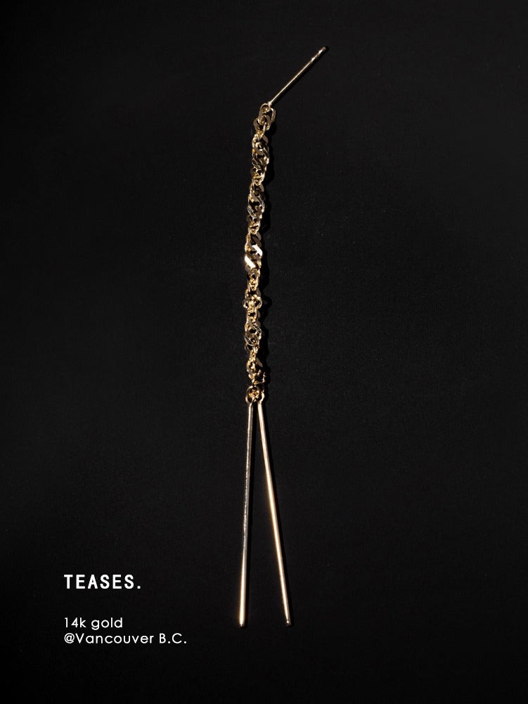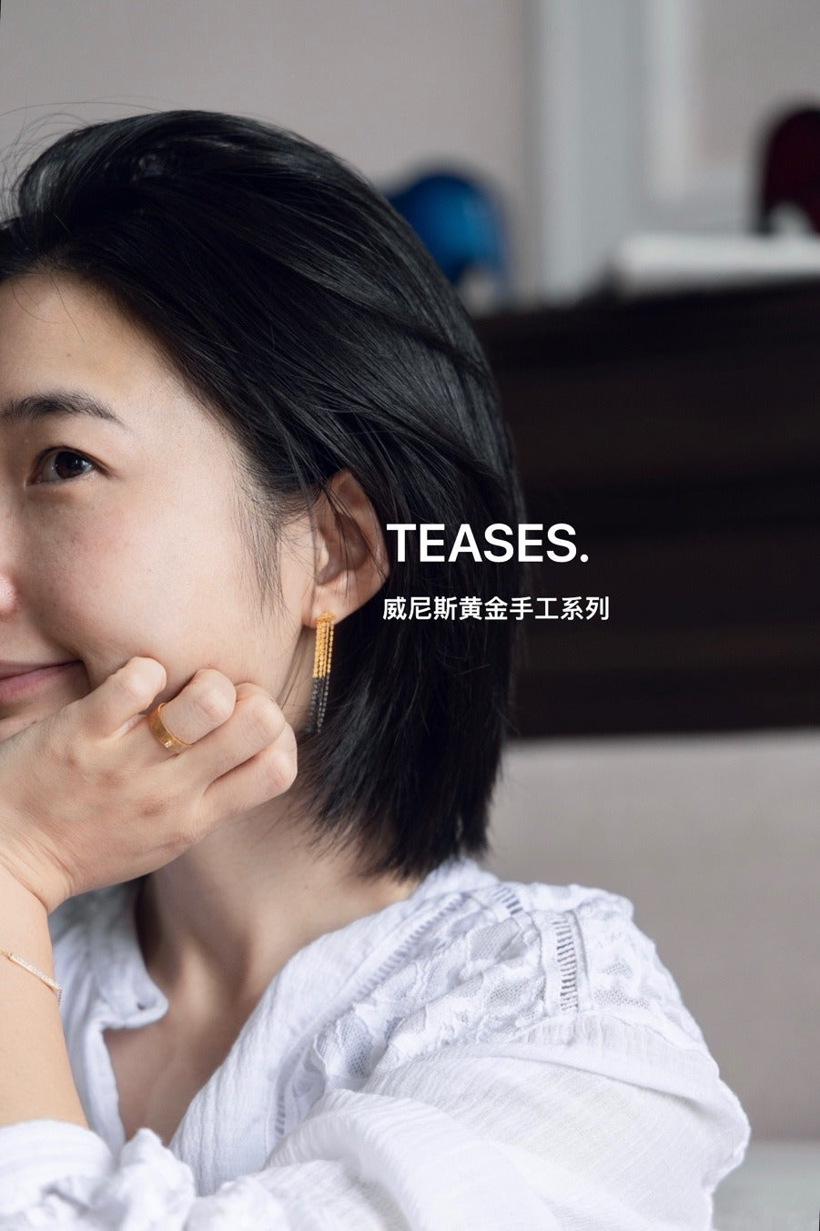 A curated trio of drop earrings crafted to move with light and speak in subtle elegance. Each design plays with motion, texture, and sculptural form—bringing an effortless sophistication to your everyday style. Thoughtfully made in fine gold and artisan detailing, these earrings pair beautifully with TEASES rings and necklaces for a polished, expressive look in any moment.